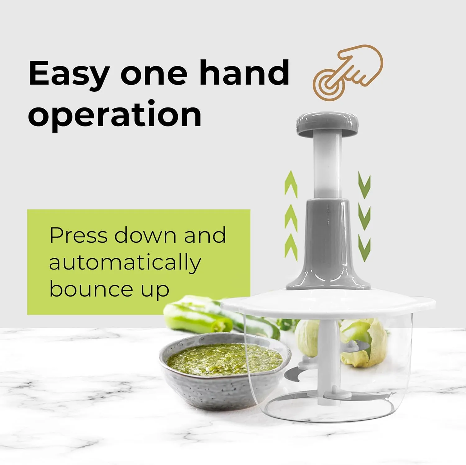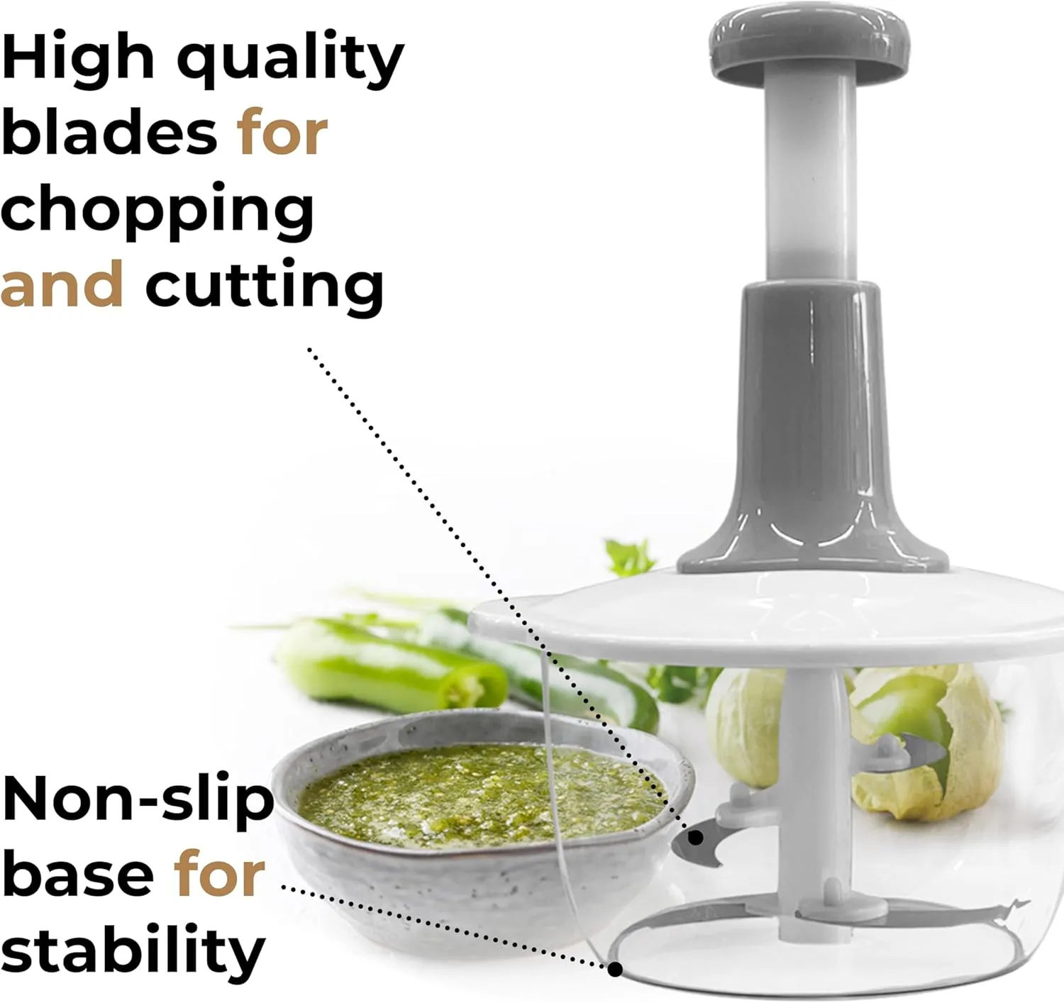 Equipped with 4 sharp stainless steel blades, the chopper delivers quick and efficient cutting without the need for electricity. The pump-action design makes chopping effortless, while the durable BPA-free container ensures long-lasting use and safe food preparation.